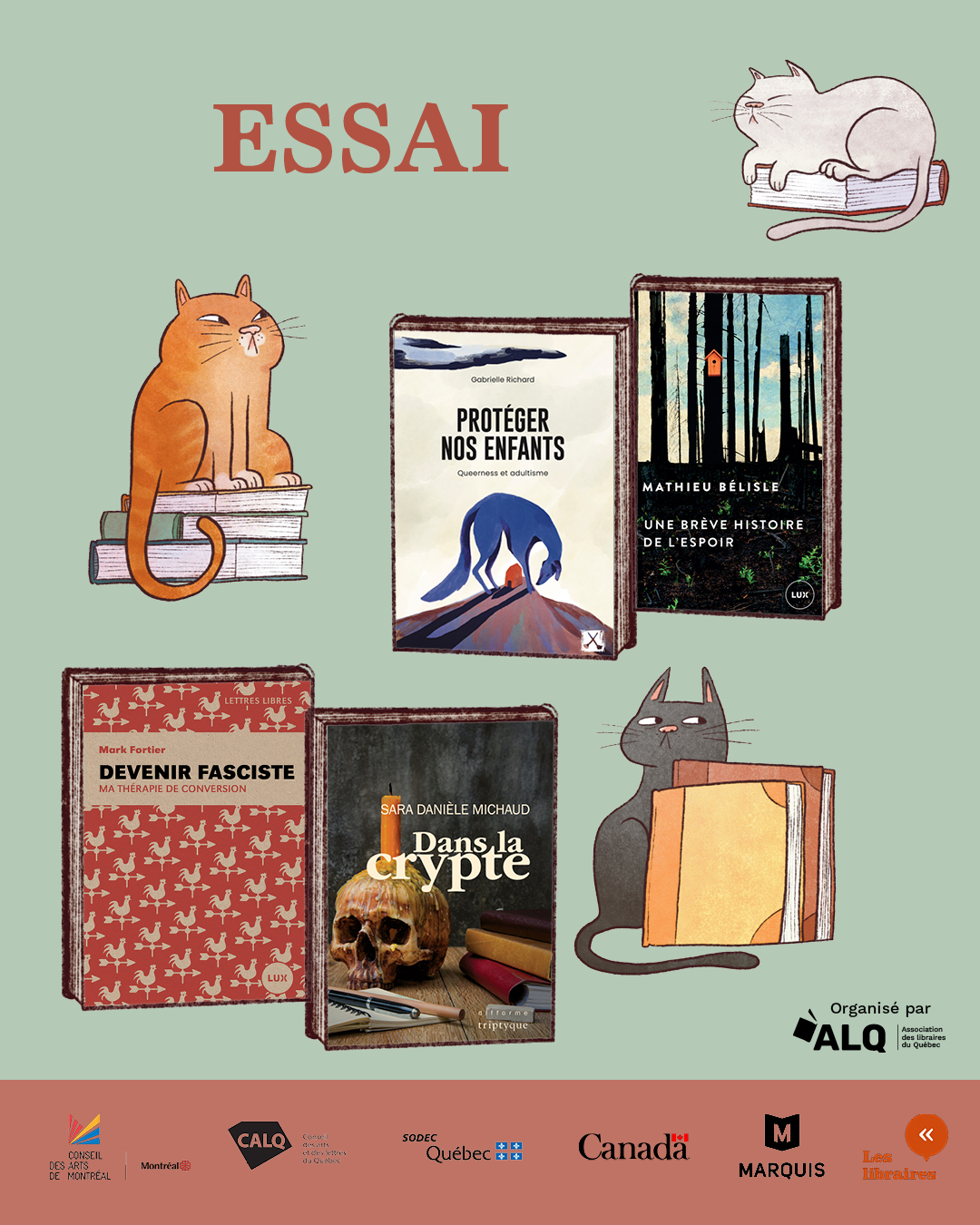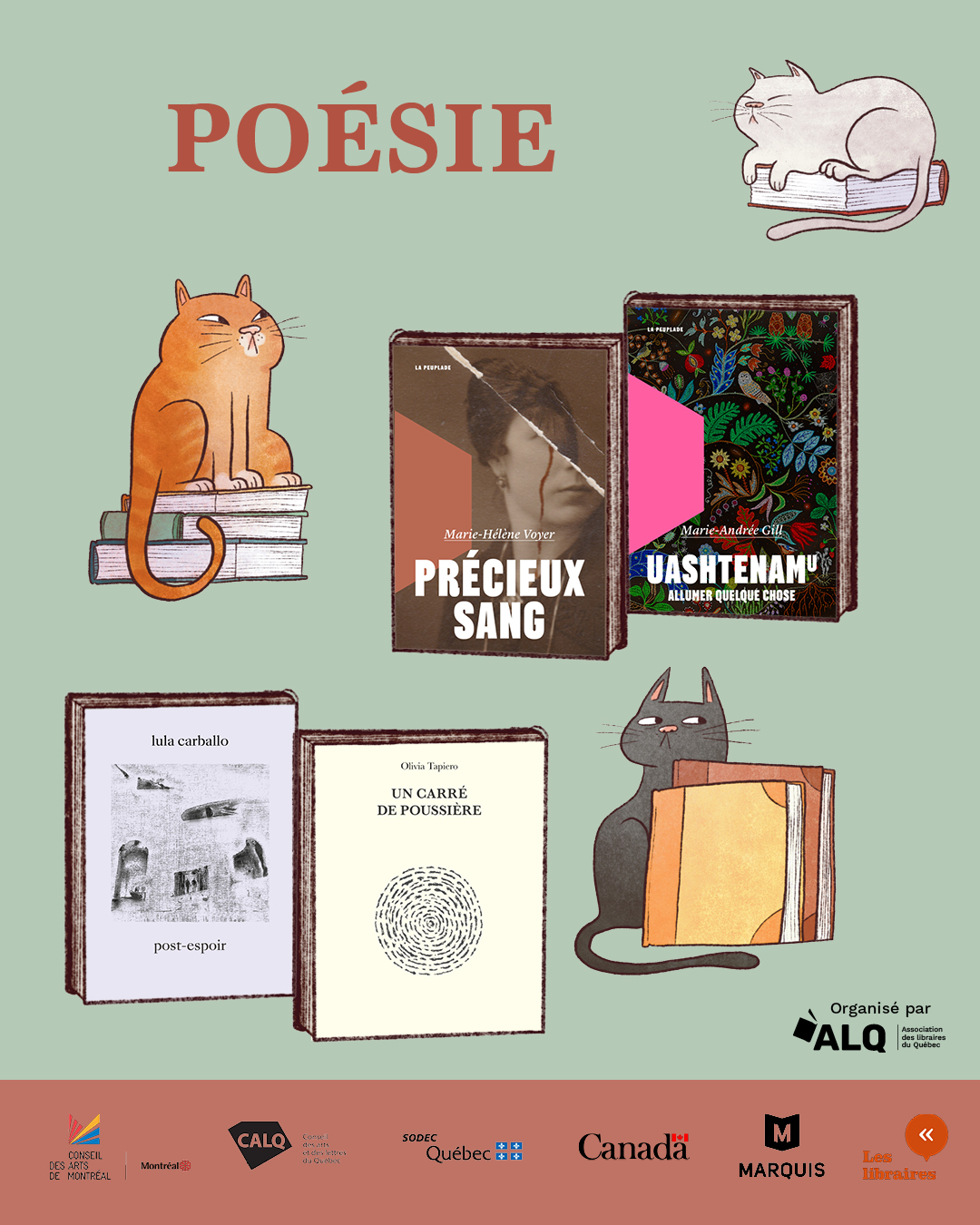 Merci à nos partenaires : la Société de développement des entreprises culturelles (SODEC), le Conseil des arts du Canada (CAC), le Conseil des arts et des lettres du Québec (CALQ), le Conseil des arts de Montréal (CAM), Gestion SLIM, Leuchtturm1917 Canada, Marquis Imprimeur et la coopérative des Librairies indépendantes du Québec (LIQ).